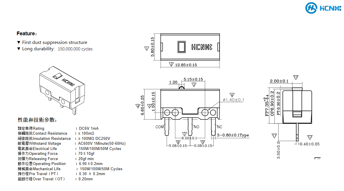 150Million miniature snap action switch